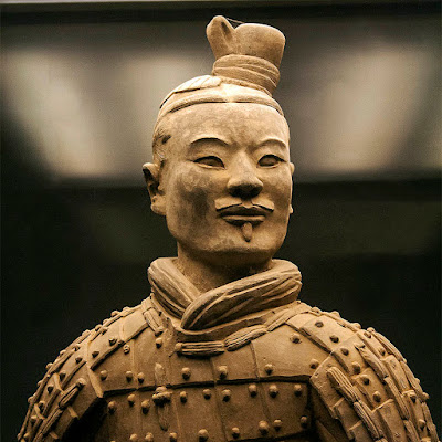 equipados con atuendos y armaduras realizadas igualmente en terracota y